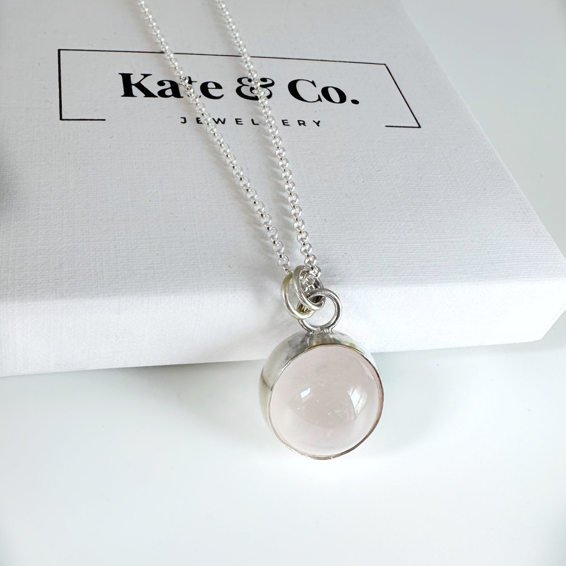 Materials: rose quartz sphere and sterling silver